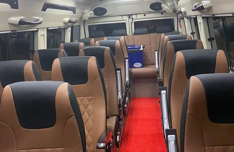 Experience unparalleled comfort with our 12-seater tempo traveller featuring Maharaja seats. Perfect for small groups, this vehicle combines luxury and convenience to enhance your travel experience. The Maharaja seats are extra-wide and reclinable, offering ample legroom and a plush, comfortable ride. Whether you’re planning a family outing, corporate event, or a group tour, this tempo traveller ensures everyone travels in style and comfort. The air-conditioned interior keeps you cool and relaxed, even on the hottest days, while the spacious design allows for a comfortable journey. Modern amenities, including an entertainment system, further add to the enjoyment of your trip. Our 12-seater tempo traveller is meticulously maintained to provide a smooth and enjoyable ride, making it an excellent choice for both short and long-distance travel. Choose this premium option for a superior group travel experience with Smiles for Miles Travels.